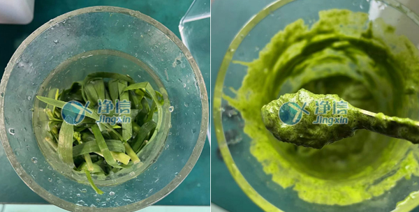 实验目的:使用全自动样品均质器把韭菜、香菜磨成糊状以便更好的检测其成分等一系列实验。