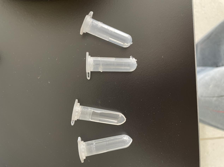 实验开始客户使用自配的离心管进行研磨,两个样品,另外添加两个净信生产的加厚研磨管进行四角配平,时间30s,功率调到4档。客户的离心管很薄,立马被击碎,净信加厚研磨管没有破裂但也出现了较严重磨损。