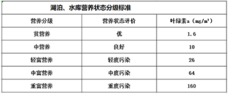 中国环境科学研究院李子成在《中国湖库营养现状调查分析》中对湖泊、水库的营养状态进行了分级。