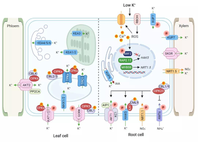 近日中国农业大学武维华院士团队题为"Potassium and phosphorus transport and signaling in plants"的综述论文。该论文以拟南芥和水稻为例,系统归纳了植物、作物吸收、运输钾和磷的分子调控机制,以及植物/作物感受和应答低钾、低磷逆境胁迫的信号转导机制。此外,论文还讨论了氮、磷、钾养分之间的互作关系,及其协同吸收、运输的分子机理。