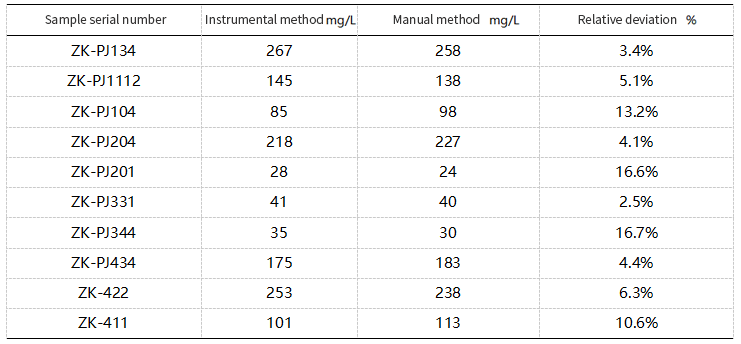 Take 10 water samples respectively, follow the HJ828-2017 standard operating steps, perform manual operation and on-board operation, compare the obtained experimental data, and calculate the percentage of deviation between the two.