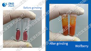1. Test method for grinding wolfberry tissue with Tissuelyser plant tissue grinder | 2. Test method for grinding citrus peel tissue with Tissuelyser plant tissue grinder |