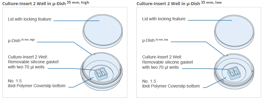 Ready-to-use: the Culture-Insert is already placed in the µ-Dish 35 mm, high or µ-Dish 35 mm, low