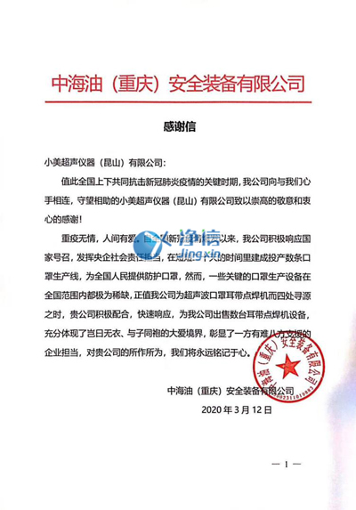 是的,这是我们小美超声!抗击疫情,我们不是旁观者。我们与时间赛跑,推掉别的订单,争分夺秒加班加点的为中海油生产口罩耳带点焊机。员工24小时两班倒,靠吃泡面节省时间。力求在很短的时间内把口罩机交到中海油的手上,大大提高了其口罩生产的产量。