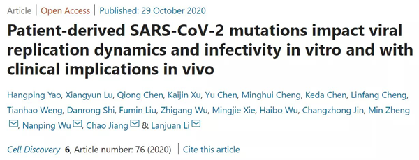 近日,李兰娟院士团队等在 Cell Discovery 杂志发表了题为:Patient-derived SARS-CoV-2 mutations impact viral replication dynamics and infectivity in vitro and with clinical implications in vivo 的研究论文。李兰娟院士团队从浙江大学附属医院收治的新冠患者中鉴定到11个SARS-CoV-2病毒株,发现鉴定出的突变会直接影响新冠病毒的滴度和感染能力,差异多可达1500倍。该研究提供了直接证据,表明新冠病毒的自然突变会严重影响病毒的复制和感染能力,并影响感染者的病情严重性。