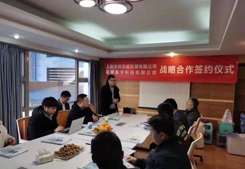 12月28日,上海净信与昆明友宁科技有限公司举行战略合作签约仪式。以进一步加深双方战略合作伙伴关系,营造更优质的云南市场环境及氛围,达成以“共赢、共创、共享”的理念。上海净信实业发展有限公司吴总经理及各系列产品总监, 昆明友宁科技有限公司邓总经理及各部门负责总监出席并见证了本次签约。