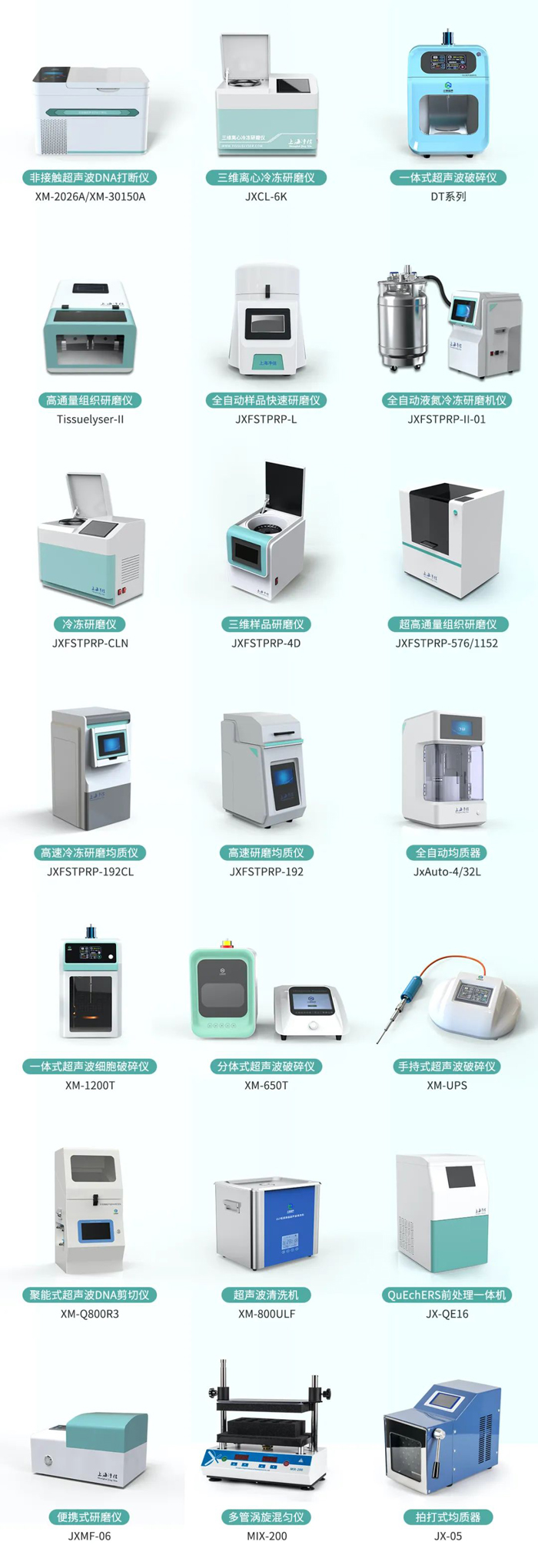 分子生物学是生物学的前沿与生长点,其主要研究领域包括蛋白质体系、蛋白质-核酸体系(中心是分子遗传学)和蛋白质-脂质体系(即生物膜)。上海净信的非接触超声波DNA打断仪、三维离心冷冻研磨仪、一体式超声波破碎仪等多款仪器可应用于细胞与分子生物学领域的研究。