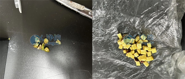 左为研磨后;右为研磨后加水混匀后