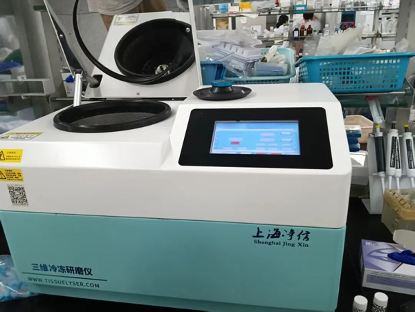 1.准备JXCL-3K三维冷冻研磨仪一台,24*2ml的适配器一套,肿瘤组织进行前处理,做好研磨前准备。