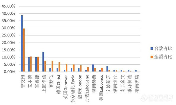 上海净信异军突起,2025年真空离心浓缩仪销量跃居第二名,市场占比百分之13.75