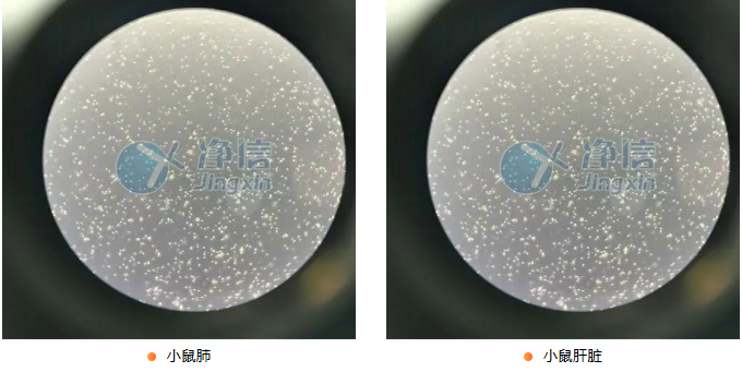 小鼠肺(左)和小鼠肝脏(右)显微镜结果图