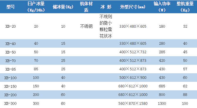 4. 双螺旋挤压制冰方式, 所制冰形为不定形颗粒状冰,能渗入较窄空间,迅速冷却,冰浴效果好。