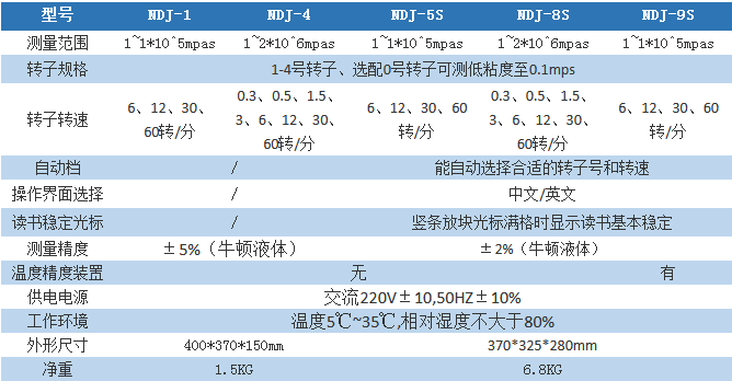 NDJ-1旋转粘度计主要技术指标: