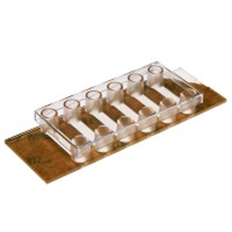 无底6通道载玻片用于细胞培养,带有自黏底部,从而可以粘上底物