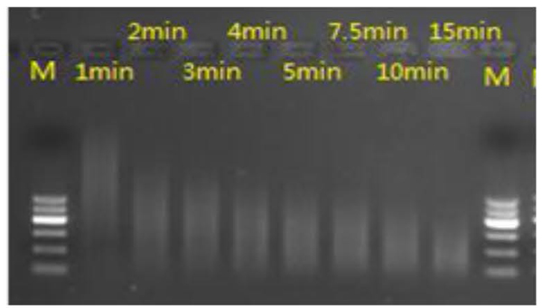 4.相同处理时长的样本混合后,琼脂糖凝胶电泳检测结果: