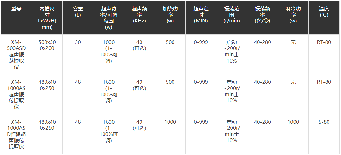 XM-500ASD超声振荡提取仪、XM-1000AS超声振荡提取仪、XM-1000ASD恒温超声振荡提取仪
